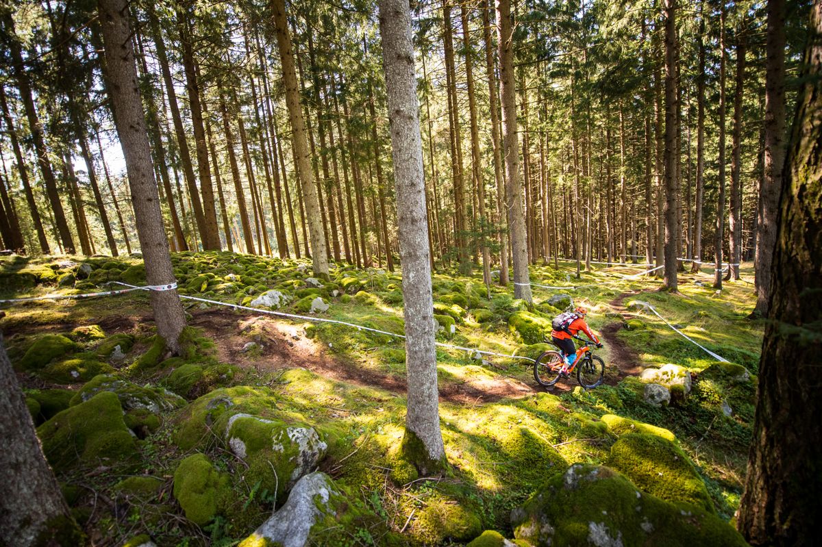 Am Freitag konnte man dann die ein oder andere abgesteckte Stage ausfindig machen und ein bisschen trainieren. Samstag und Sonntag stand dann das Rennen auf dem Programm. Die Enduro-Session am Samstag verlief über 23 Kilometer und 900 Höhenmeter, die All Mountain Session am Sonntag über 17 Kilometer und 600 Höhenmeter. Ein wenig Nervosität machte sich vor dem Start in mir breit, auch wusste ich nicht recht, an welcher Stelle ich mich ins Starterfeld einordnen sollte, denn mit Startnummer 299 hätte ich als eine der letzten starten müssen. Allerdings darf man sich bei der TrailTrophy mit anderen Teilnehmern zusammen tun und gemeinsam starten, unabhängig von der Startnummer. So reihte ich mich neben meine Freundin Judith mit der Nummer 55 ein und fuhr entspannt zur ersten Stage.