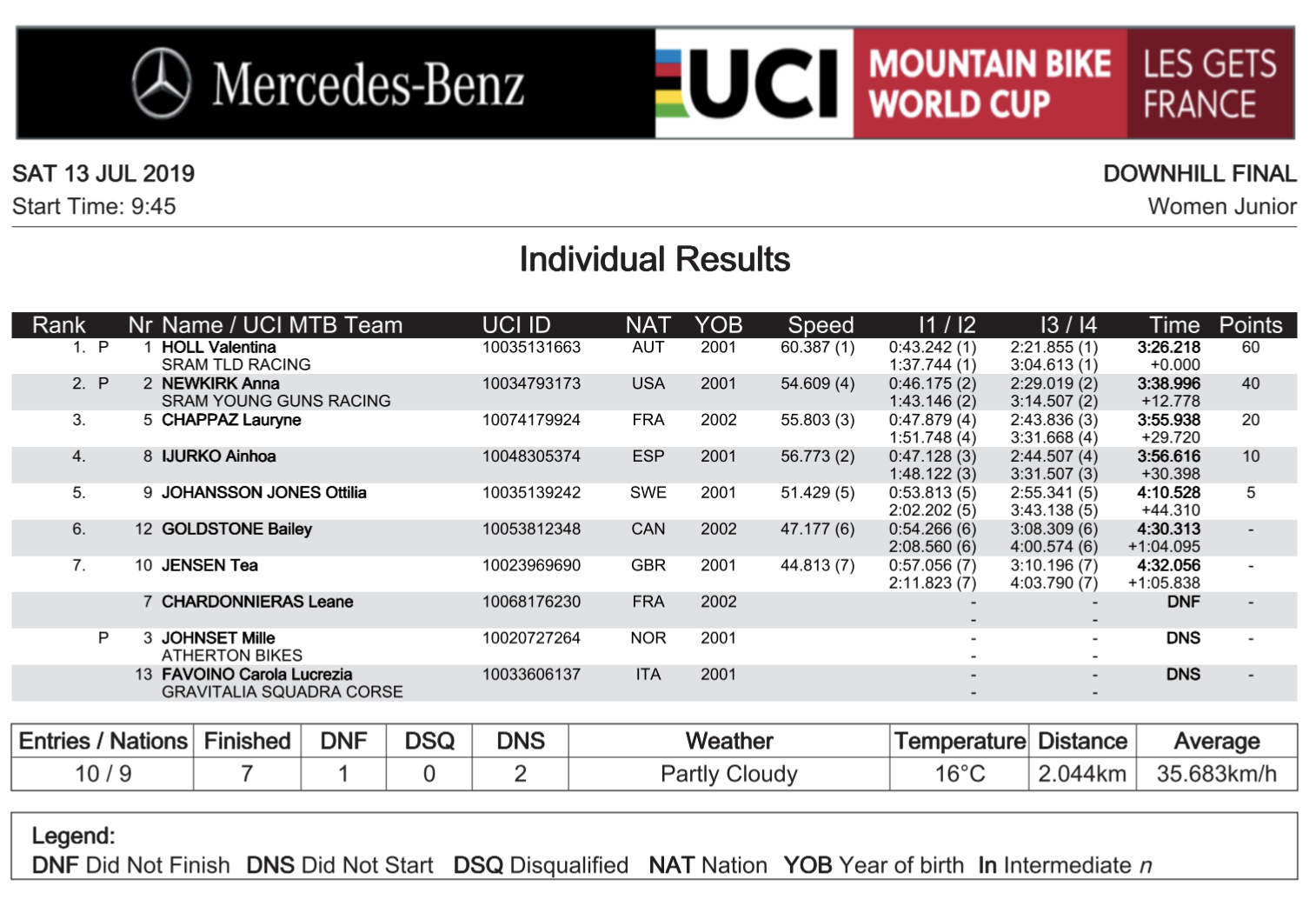 Vali Höll, nicht erst seit diesem Jahr wissen wir, dass dieser Name in die Geschichtsbücher eingehen wird. Sie wurde lange Zeit Little Miss Downhill genannt doch dieses “little” können wir spätestens ab heute streichen. Während die 17-jährige sich bei den Juniorinnen heute beim UCI Worldcup in Les Gets wieder einmal Platz 1 sicherte, fuhr sie bei den Damen ebenfalls die beste Zeit ein und währe somit auch bei den Elite Damen auf dem Treppchen ganz oben gestanden. Mit einer Zeit von 3:26.218 Min war sie 1.4 Sekunden schneller als Tracey Hannah. Im Dezember wird die gebürtige Österreicherin Volljährig und mischt somit ab 2020 bei den Großen mit. Wir sind uns jetzt schon sicher, Vali Höll wird den Rennzirkus ganz schön aufmischen.