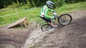 Die brandneue Downhill-Strecke, die kurz vor dem Rennen fertig gestellt wurde, hatte es wirklich in sich! Im oberen Teil konnten sich die Racer noch über ganz frischen, losen Waldboden freuen, es reihten sich viel kleine Anlieger an einander und das ein oder andere Wurzelfeld musste bezwungen werden! Offene und zum Teil hängende Kurven machten es den Teilnehmern aber nicht gerade einfach, schnell ins Ziel zu kommen!