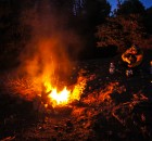 Während die anderen sich gemütlich einrichten, habe ich nur diesen einen Hang vor meinen Augen, den ich ca. 200m von unserer neuen Heimat, auf der Herfahrt, gesehen habe. Da gibt’s nur eins, schnell das Rad zusammenbauen und den Helm suchen. Wo ist die Hose, Knieschoner, Handschuhe? Na egal, das geht auch in Jeans und T-Shirt. Ja, richtig gehört, hier hat´s abends noch knapp 20 Grad. Erste Abfahrt, steiler als gedacht aber freie Linienwahl und Hinterraddrifts ohne Ende, geil! Marokko gefällt mir schon jetzt! Doch auch in Marokko wird’s im Winter um halb 6 dunkel. Also runter vom Bike, schleunigst das Zelt aufbauen den Anderen helfen die Feuerstelle zu errichten und Holz zu suchen. Gar nicht so einfach, der Wald ist wie leer gefegt. Alles Brennbare wird sorgsam aufgelesen.