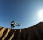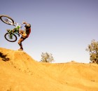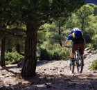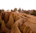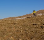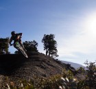 Irgendwie war ich noch nicht zufrieden mit dem Gelände. Zu viel hochalpines, teils langsames und technisches Steingeballere. Und da war dieses Gebiet das wir am 2. Tag von oben gesehen haben. Es sah nicht zu steil aus, kaum Büsche, sandig!? So verlockend das „shutteln“ der Anderen war, das muss ich mir anschauen. Doch wie komm ich da zum Teufel hin? Keine Ausrede suchen, sondern Zeug packen und los. Auf einer Schotterstraße ging es bis zu einer Baustelle. Verdammt, darf man da durch? Naja egal, einfach mal fahren bis jemand was sagt. Nach 200hm entlang der Straße, die gerade im Bau ist, lichtet sich das Gestrüpp und ich beschließe kurzerhand einfach rechts abzubiegen und den erst besten Hang unter die Stollen zu nehmen. Bremsen auf und los geht’s. Wow, Slalom um Büsche, Wasserrinnen als Achterbahn, staubige Drifts, speeeeeed, Freiheit. Also hochschieben nochmal! 300m nach links, runter, hochschieben, runter, Pause hochschieben,…