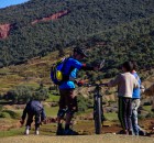 Fahren, tragen, fahren, tragen! Oben angekommen: Wow! Was für eine Aussicht! Marokko war ‘ne super Idee! Unter uns liegt das Paradies! Doch wir werden recht schnell von der Realität wider eingeholt, denn Bernd hat seinen linken Knieschoner verloren, aber die Suche ist vergeblich!