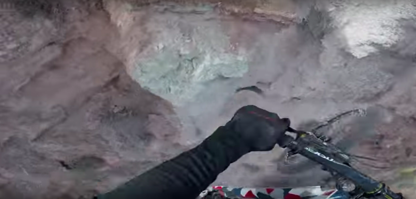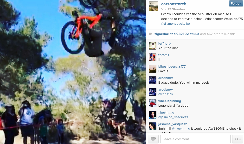 Statt zu gewinnen, trickste Diamondback-Fahrer Carson Storch lieber ein bisschen auf seinem Downhiller und legte einen 1A Backflip während des Rennens hin!
